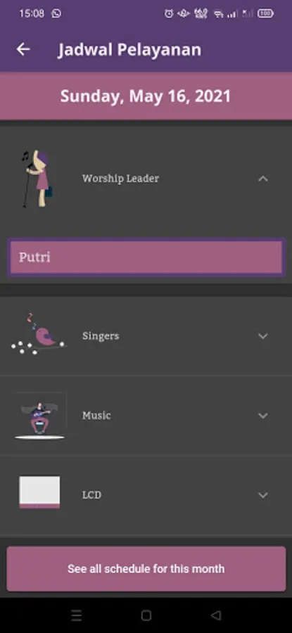 It also includes a waiter's schedule, news, a summary of reflections, and an anonymous chat feature to the Youth GBI EL-Shaddai mentor.