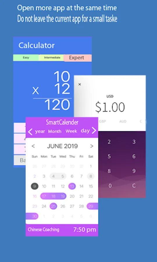 Mobile tasking multiple is as easy as you think, open more than one apps in your phone surely using the mini floating apps feature. Get multi display for your apps and access more than one apps truly with multi floating apps.