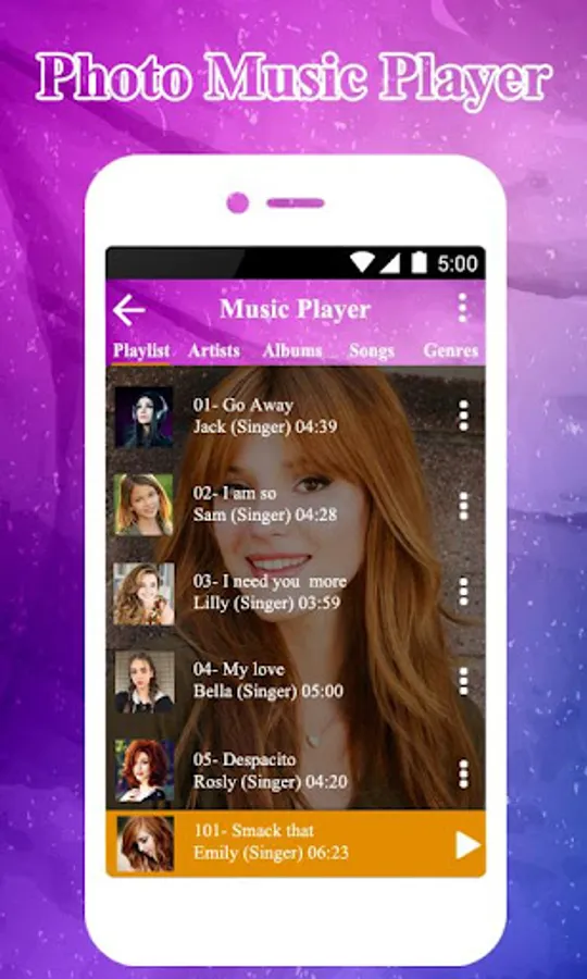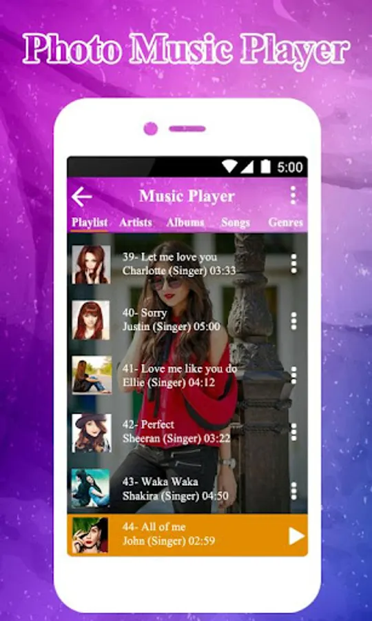 Pictures and music at the same time looks creative, this is just possible using my photo music player. Get elegant music player which play music in background and displays photosets as music player themes. Ultimate music pic from gallery in music player editor which gives you incredible features. Get latest music player app and apply music player themes using my photo music player. Choose any favorite photo and set image as music picture with my pic music player.