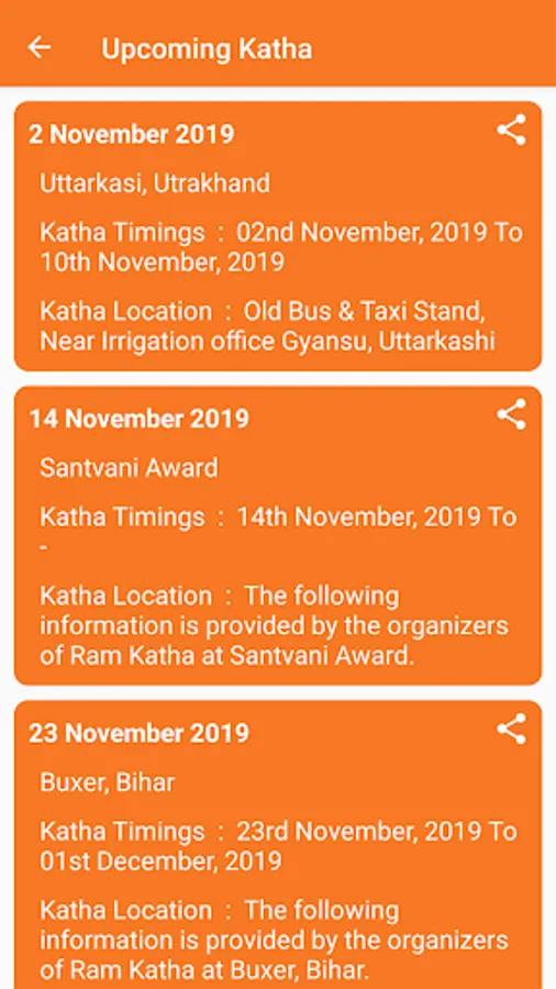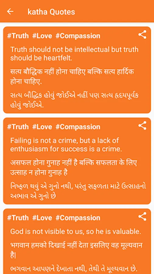 You can share all the contents of this Morari Bapu (Official) app with you friends and family through any other social media app available on your phone.