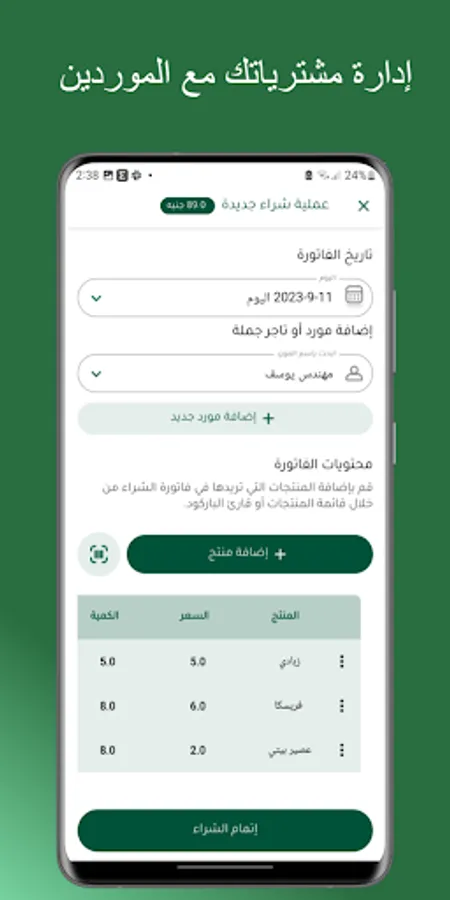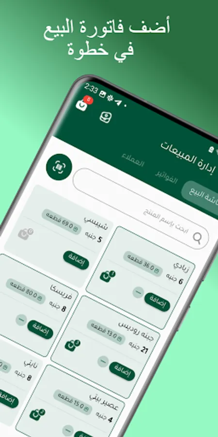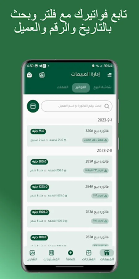 - The possibility of adding cash and credit invoices to customers and suppliers, and specifically reports of customers' receivables that are required to be paid to suppliers
