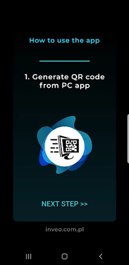 After scanning the QR code (generated by the Inveo NFC desktop application), the application allows to emulate an RFID card, due to the user gets access to objects secured with the Inveo NFC reader. Simple scanning of the QR code enables the smartphone to become the access key to selected objects.