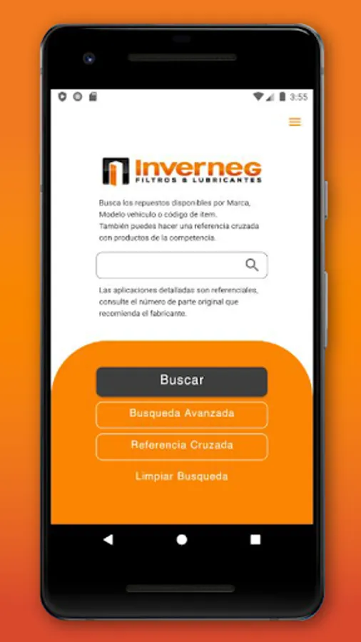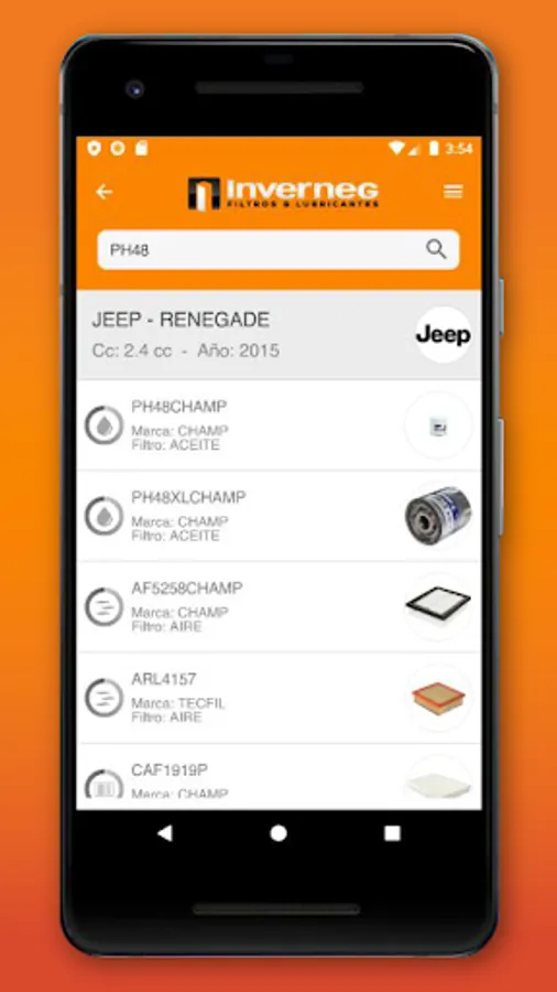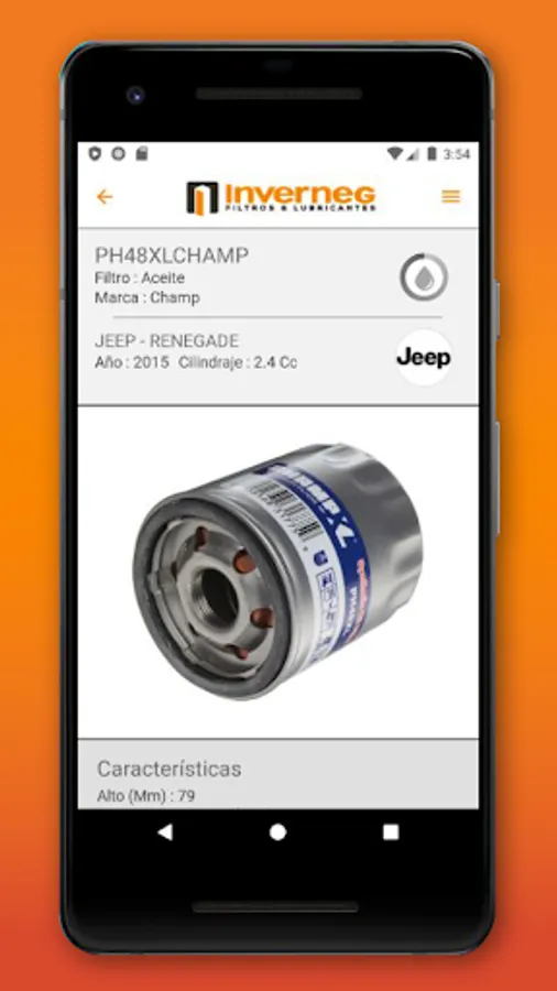 INVERNEG is a mobile application that presents a product catalog with the inventory of oil filters and spare parts for all vehicles in the Ecuadorian market.