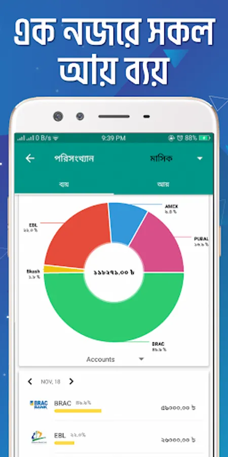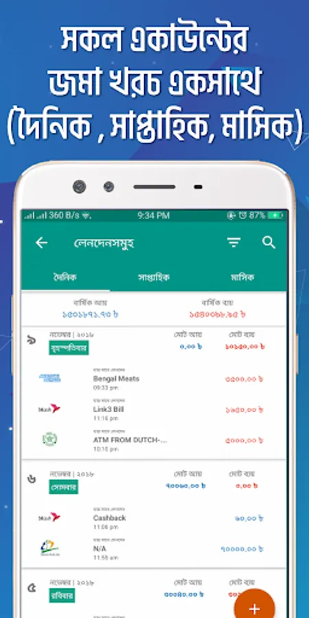 The first artificial intelligence based expense manager has been created in Bangladesh to clear daily money. No longer have to sit with a pen to nabash hisab. With hisab kitab app you can calculate all your costs in both automatic and manual ways.