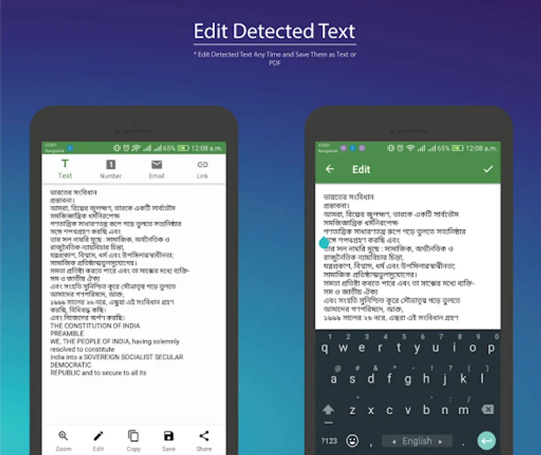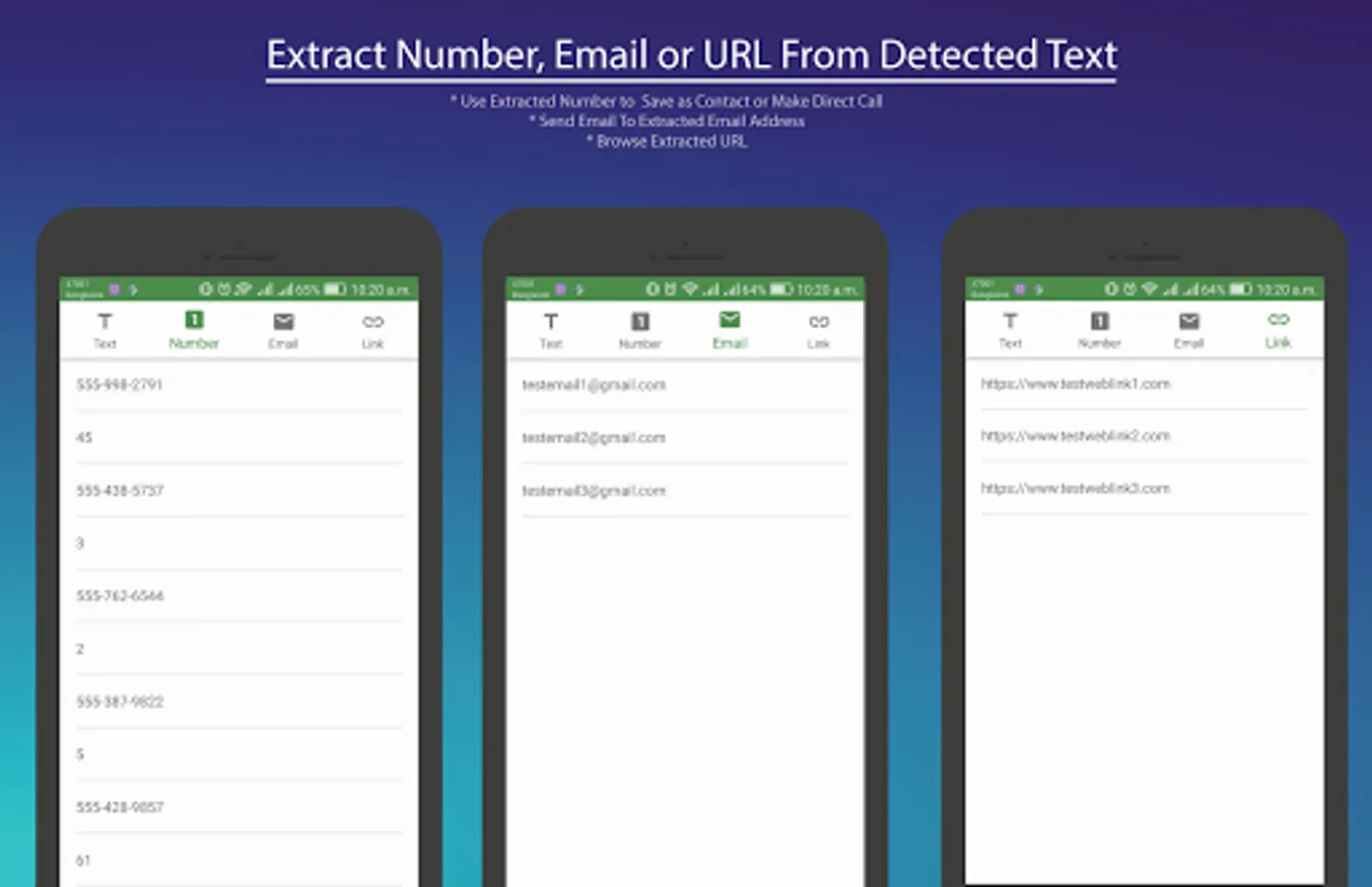 ** Detects Phone numbers from scanned text. Call or send message to or save the number directly from the app.
