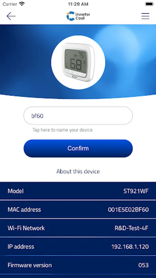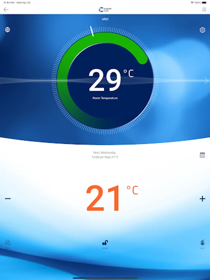 The IController app provides a clean interface with intuitive navigation to allow users to monitor and control the HVAC systems from any iOS mobile device. The App provides a simple and efficient view of the run-time status of multiple InverterCool Smart Thermostats installed on you home WIFI network. One touch allows you to drill-down into any thermostat to view the operational status of your HVAC equipment, control the set-point temperature, heating and cooling mode and fan state and schedules. A detailed settings menu allows users to access, and alter, many of the system parameters right from your mobile device. A convenient Bluetooth interface provides a fast and efficient means of connecting the thermostat to the local Wi-Fi network.