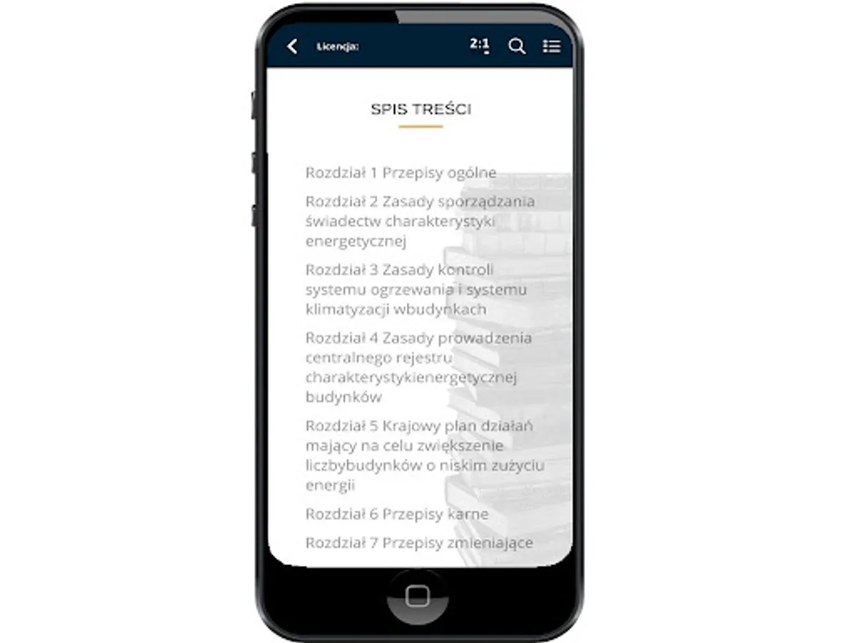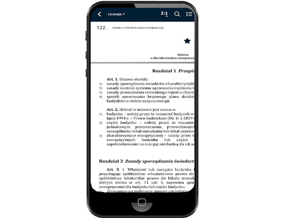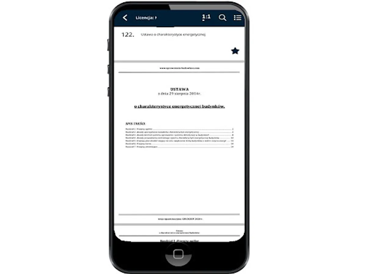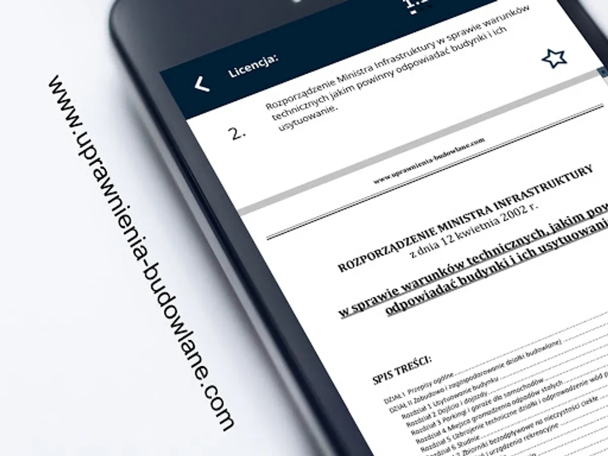 Before each examination session, the Polish Chamber of Engineers and the Chamber of Architects publish lists of legal acts which are required for the Building Qualifications exam. It is from these acts that the questions appear in both the test (written exam) and the oral part of the exam. Thanks to the application, you will have access to laws and regulations from your phone or tablet.