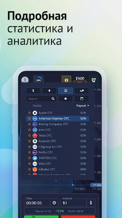 By downloading our application, you will immediately have access to the most profitable trading instruments in the international markets. Despite the situation in the world, it maintains not only a truncated list of currencies of friendly countries. This is not Alfa Investments or VTB Investments, so you will be able to trade binary options, cryptocurrencies and shares of companies from unfriendly countries. Take your trading to the next level!