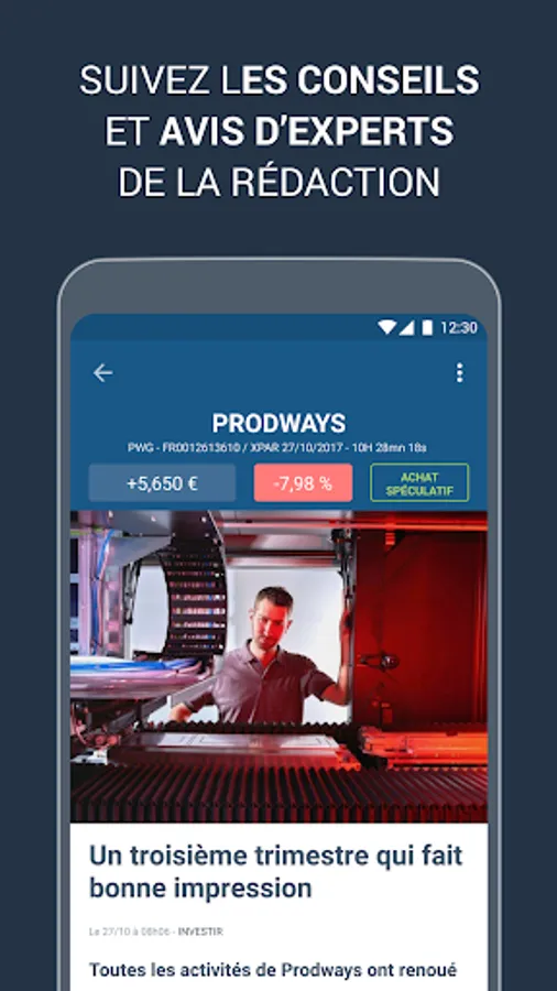Download our new Investing application and access the most complete application for analysis, advice, quotation places and financial tools, for those who want to succeed on the stock market.