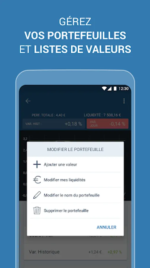 > Easily access your FINANCIAL TOOLS, list of values to follow, virtual portfolios, in a mobile application or tablet,
