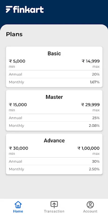 Finkart Investment is an investment management firm. We aim to provide a transparent and hassle free investment experience to the people. We always aspire to provide easy investment plan so that anyone and everyone can invest. We always strive to give complete satisfaction to our clients and ensure that they are free from any worries regarding their capital. To fulfil this objective we have created this app to ease your investment experience.