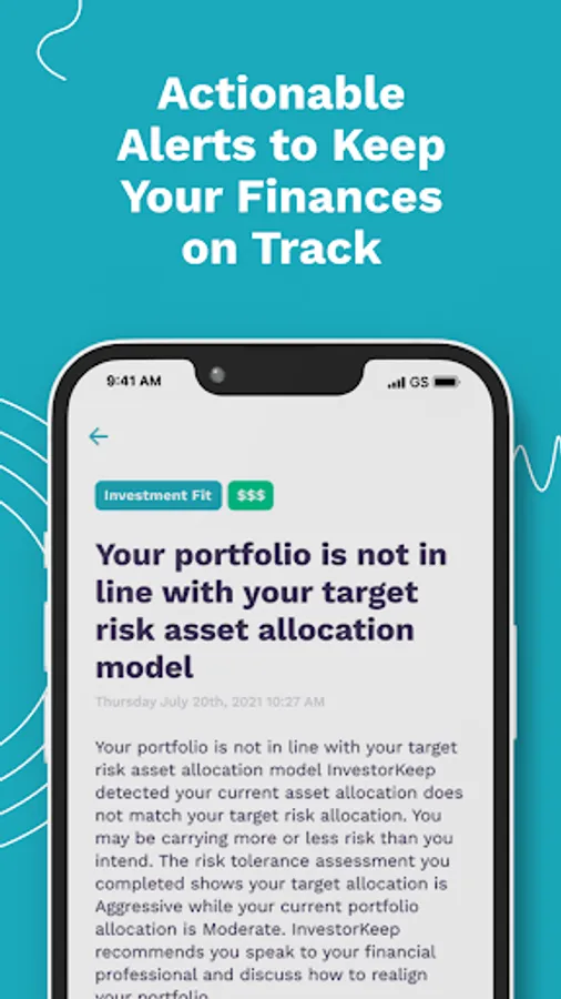 Monitors any number accounts from any number of institutions. Alerts are sent directly to you when changes, threats, or opportunities in your finances are recognized. Alerts include a description of the issue and can be forwarded to your financial professional.