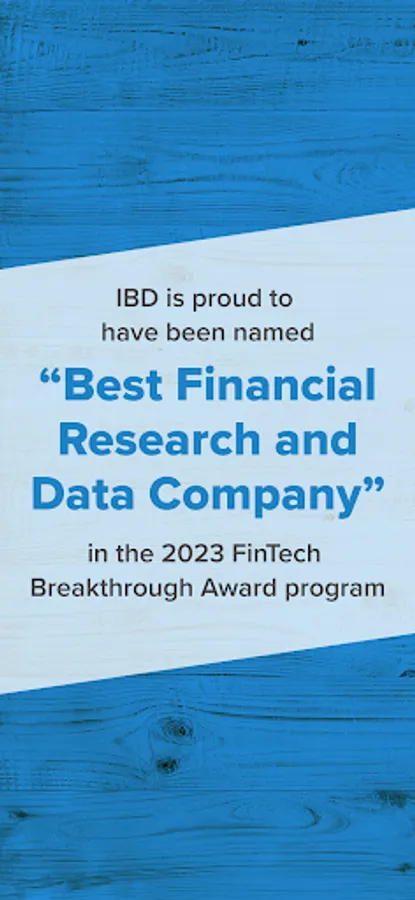 Investor's Business Daily is proud to have been named "Best Financial Research and Data Company" in the 2023 FinTech Breakthrough Award program.