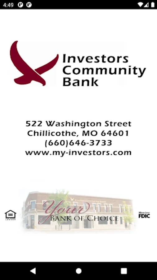 You must have an Investors Community Bank online banking user name and password prior to use. To activate Online Banking, visit www.my-invsetors.com. Equal Housing Lender. Member FDIC.