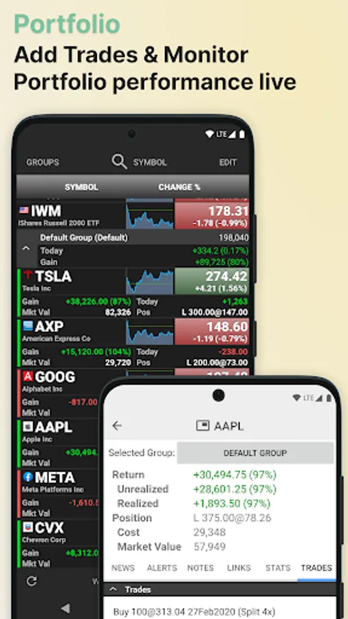 ✔ NEW: Track portfolio value and trades across all of your devices.