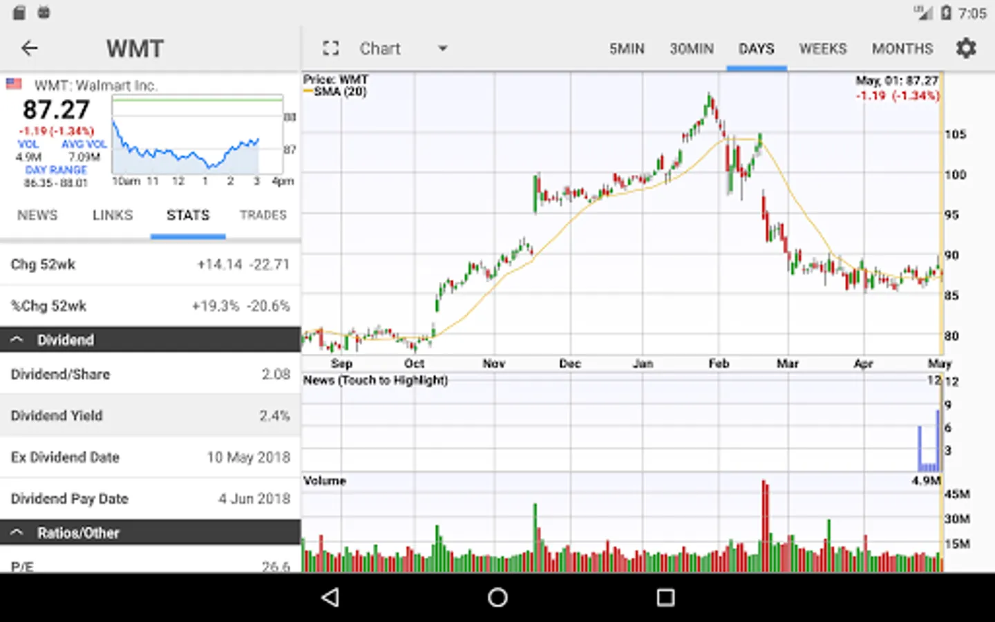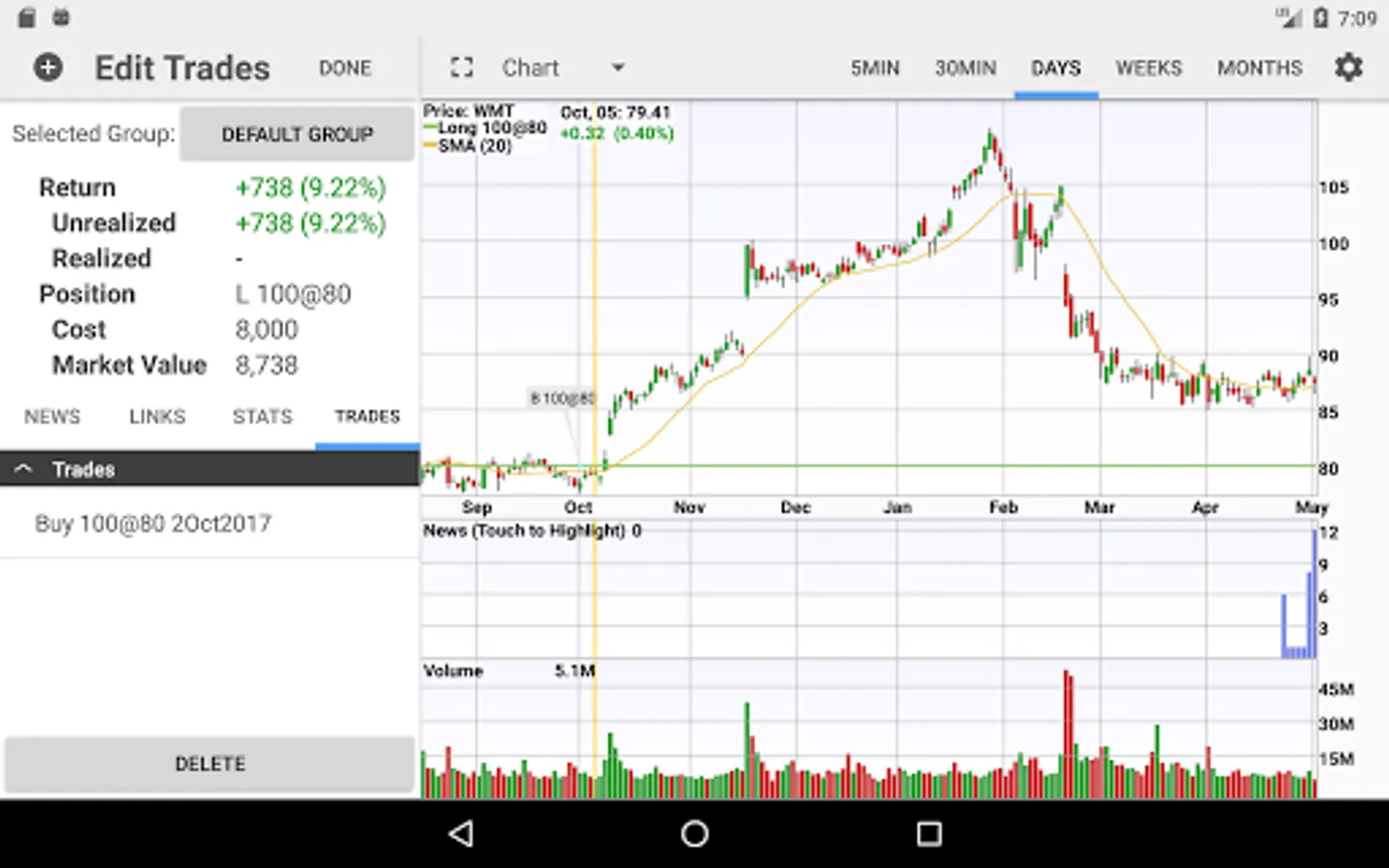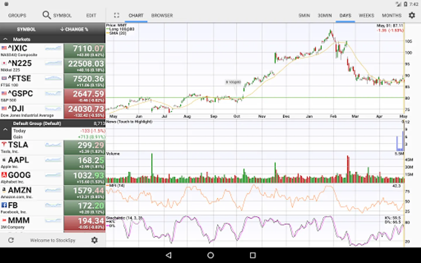 StockSpy - A slick app which simplifies tracking stocks, stock market, realtime quotes, charts, news, links & stats for stocks around the globe. StockSpy allows you to SEE how the news affects stock prices with NewsCharts!