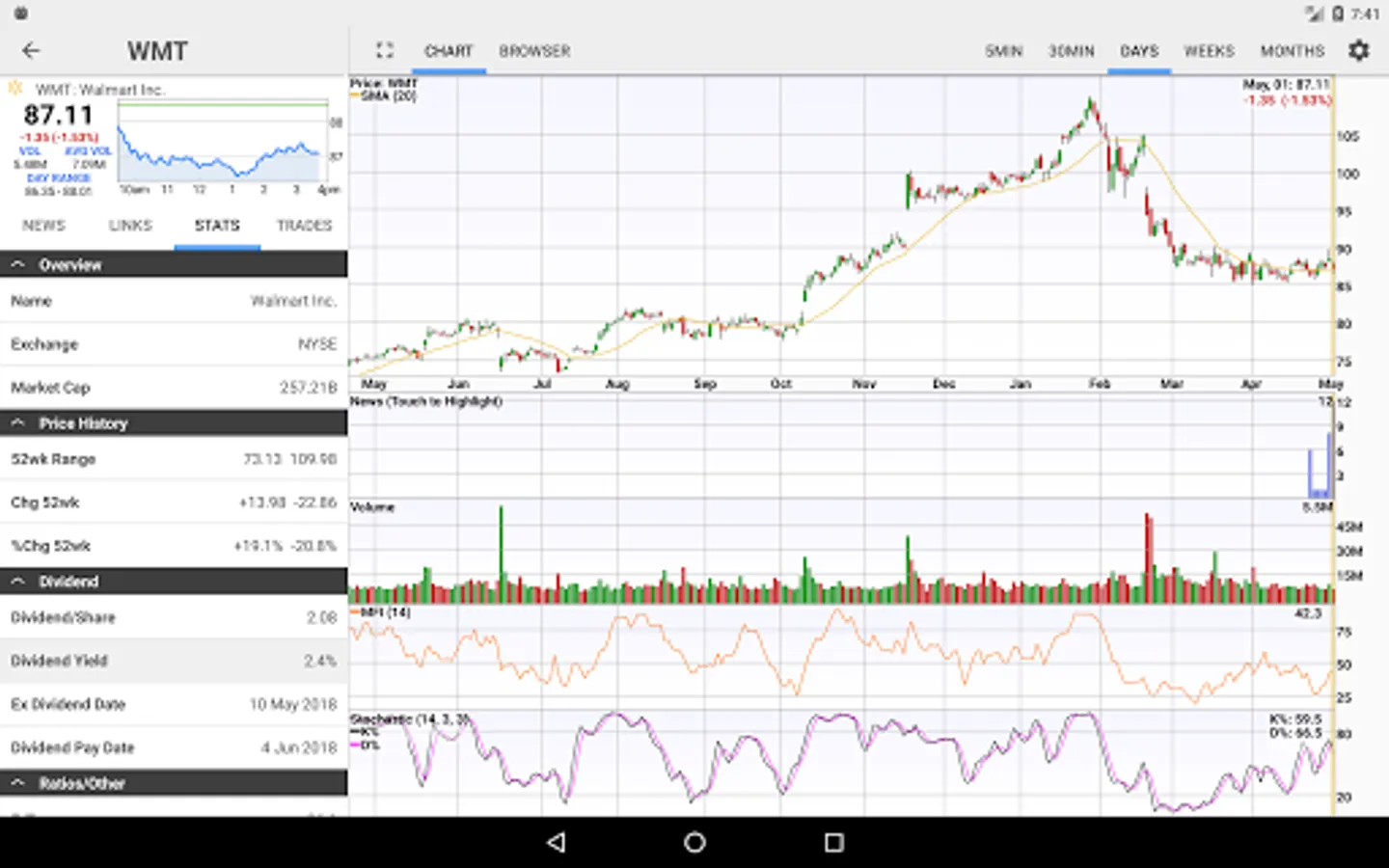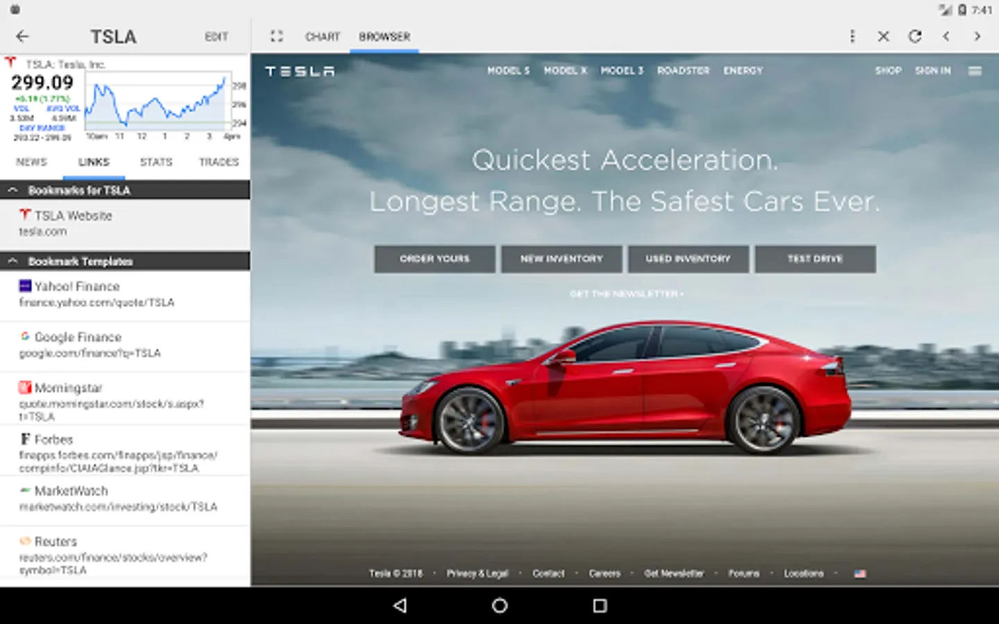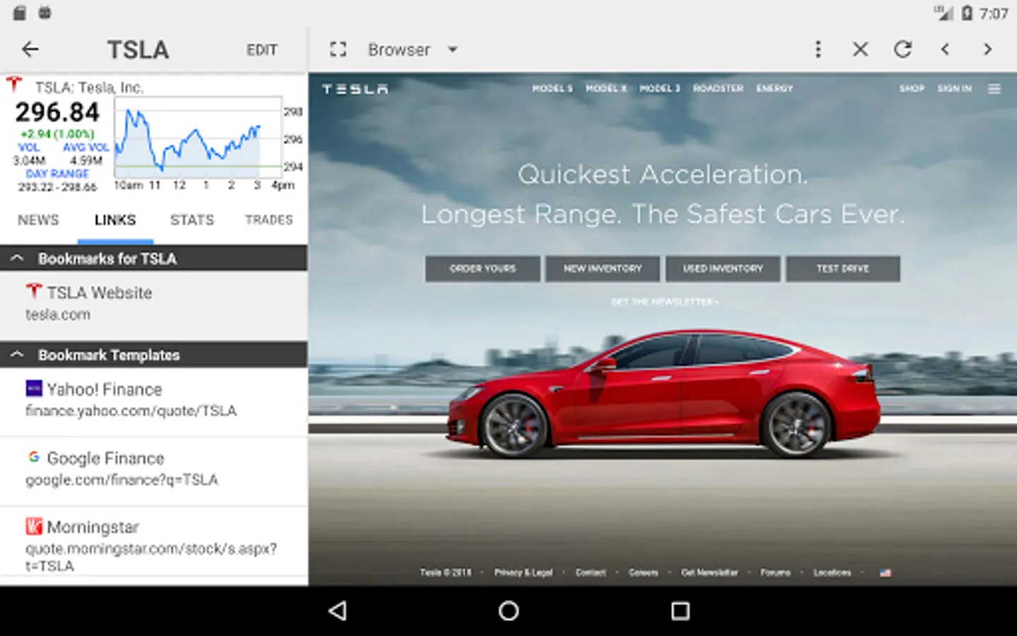 ✔ Full Screen Charts and Browser: Instantly toggle to full screen for charting or reading news articles about your stocks.