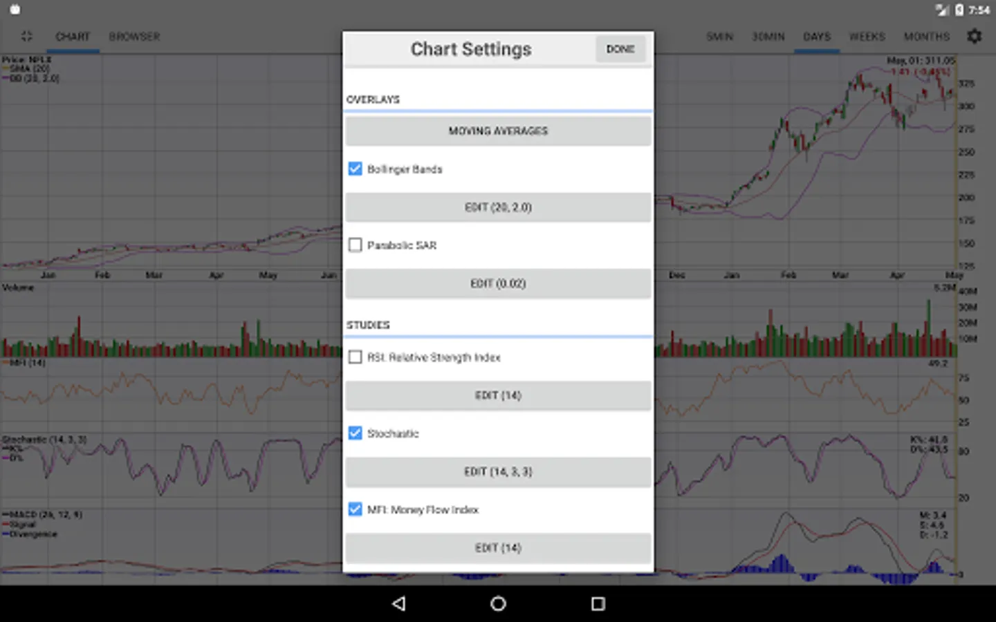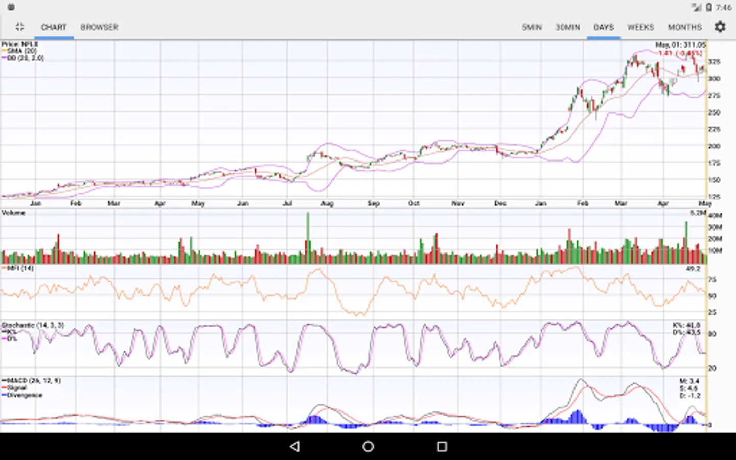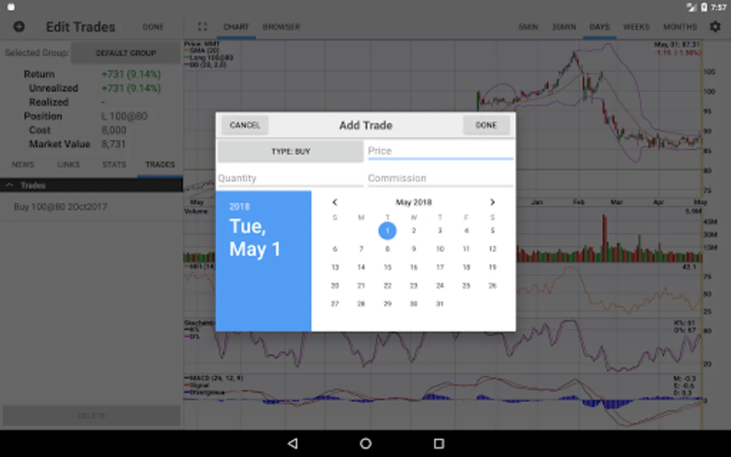 ✔ Full Screen Charts and Browser: Instantly toggle to full screen for charting or reading news articles about your stocks.