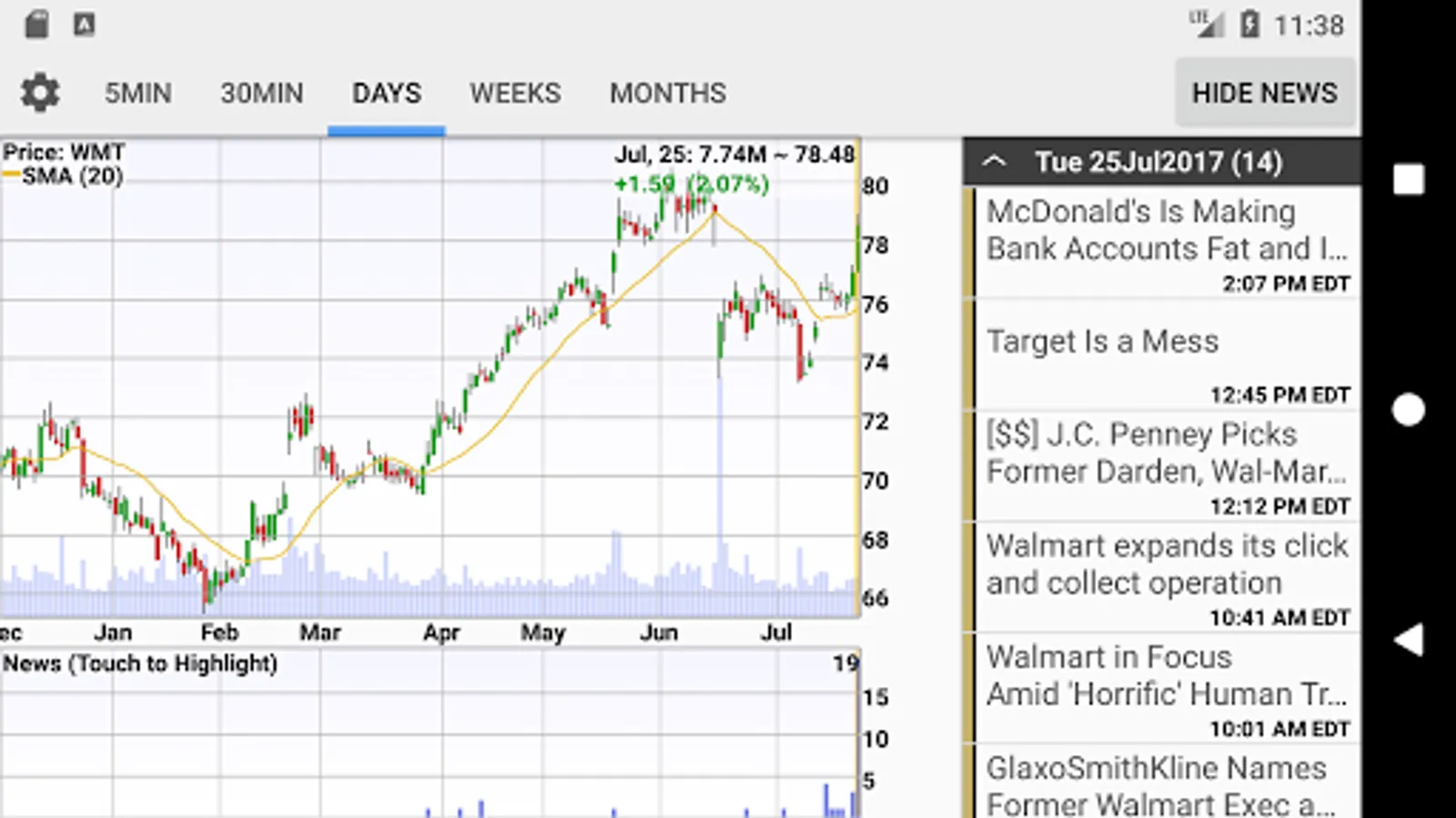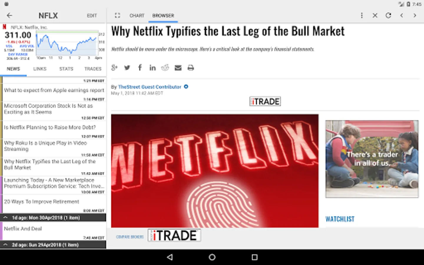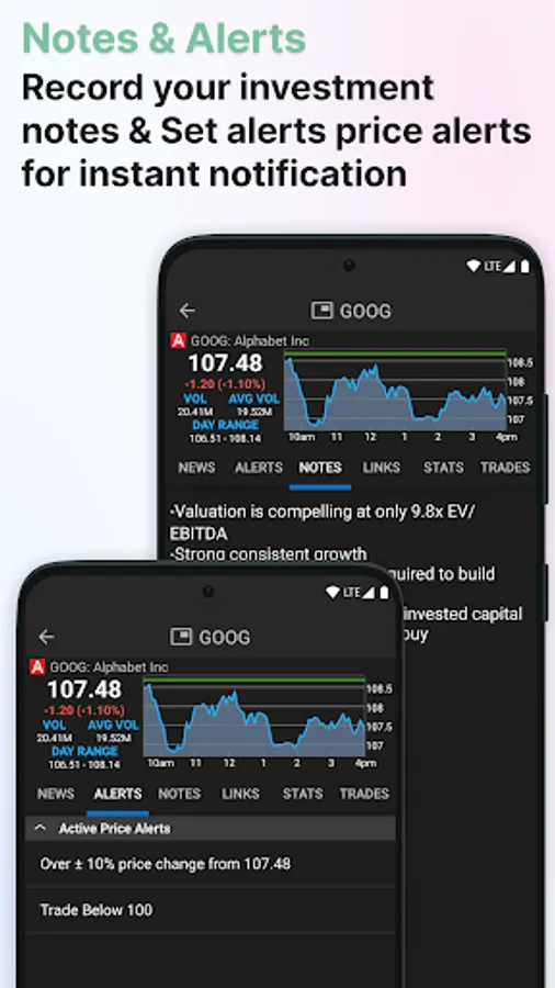 ✔ Landscape Mode: Beautiful and clear full screen stock charts & news.