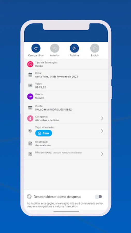 Our app offers a 360º view of your financial life in a simple and intuitive way. With this feature, you can have autonomy over your expenses; better understand your financial habits and promote reflections on expenses that can be reduced. In addition to receiving financial insights that will help you discover the best services and products for your reality.