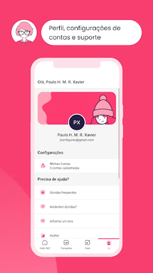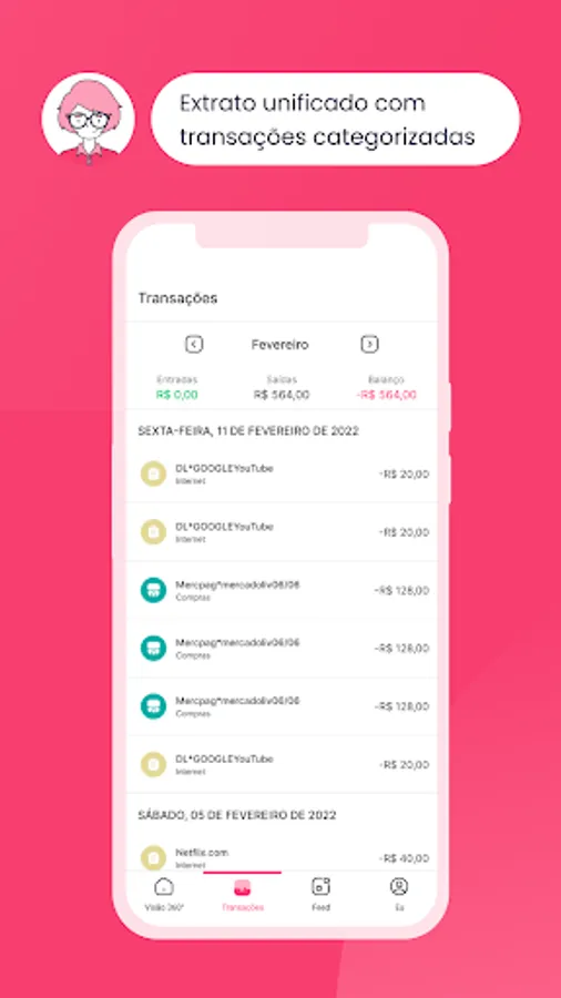 My role is to help you organize your finances. I use artificial intelligence to identify and categorize all your spending and even make recommendations for you to spend better. Let's start?