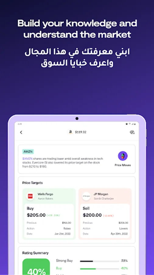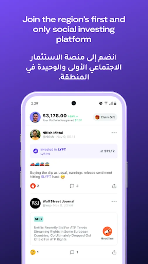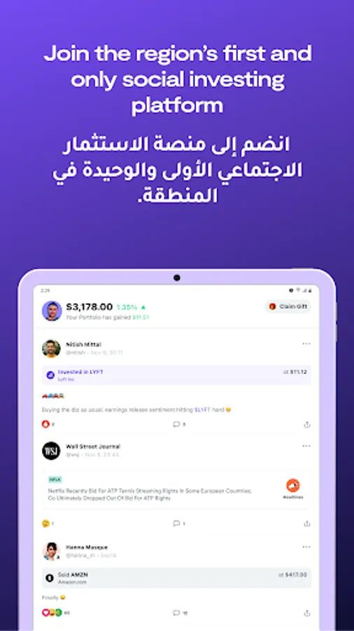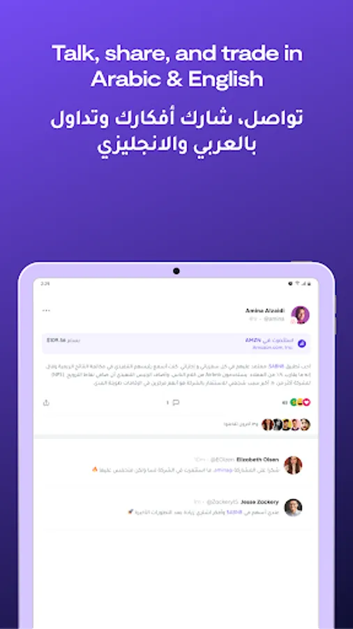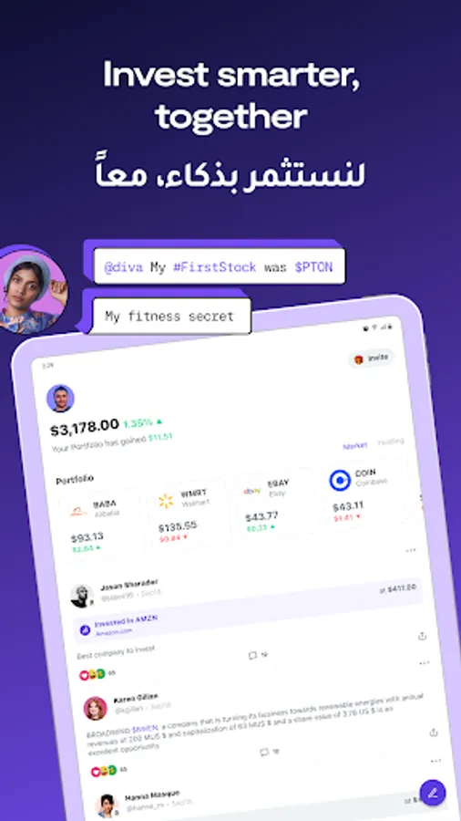 Exchange your thoughts and ideas, share strategies and trade your favorite US stocks and ETFs with a choice of Arabic and English versions.