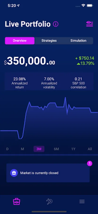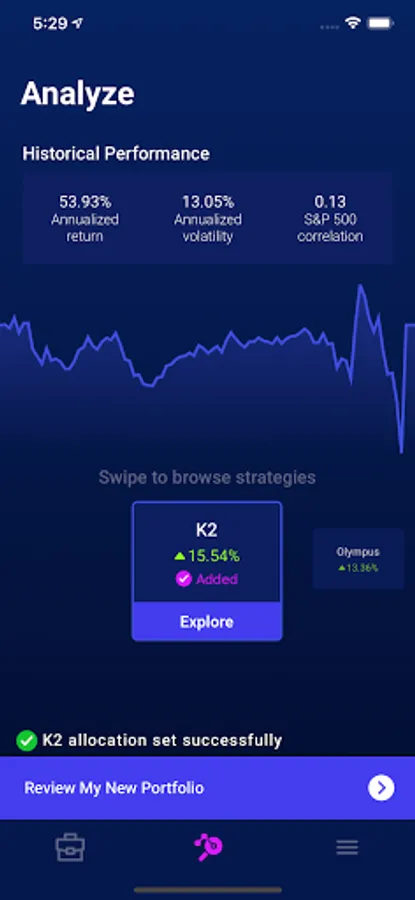 Build, test, and invest in your own quant hedge fund portfolio. Select your level of risk, return objective, and allocate your capital on the strategies that you are most comfortable with.