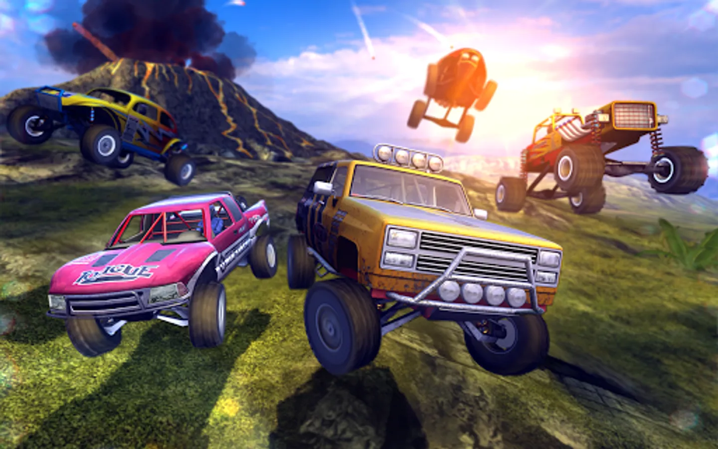 6 unique off-road vehicles: 4x4 Truck, Beetle, Peak Climber, X-Revo, Custom Beetle, Spieler Buggy