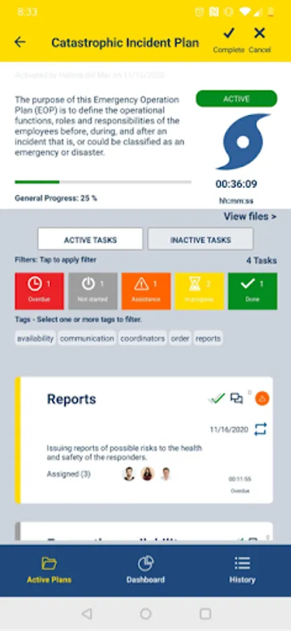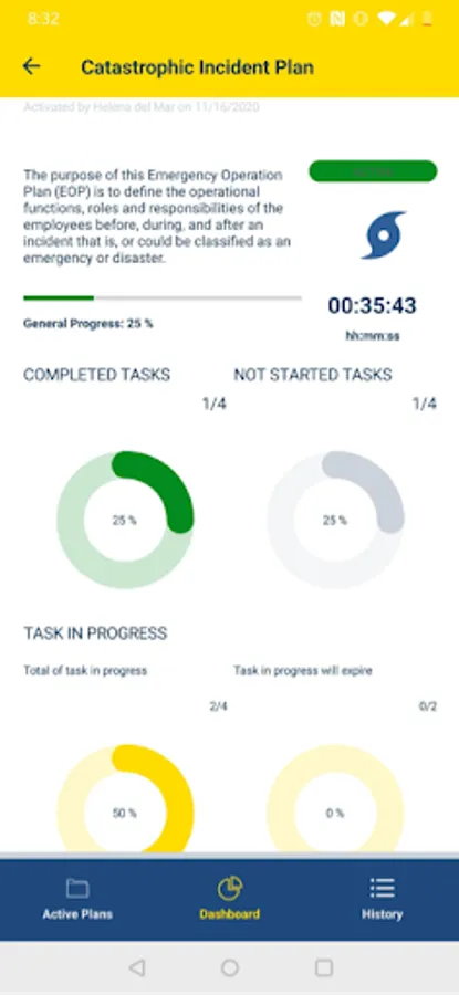 · Monitor plans and tasks progress through a dashboard during or after an emergency.
