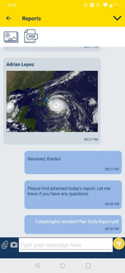 · Send messages, images, and PDF documents through the chat.