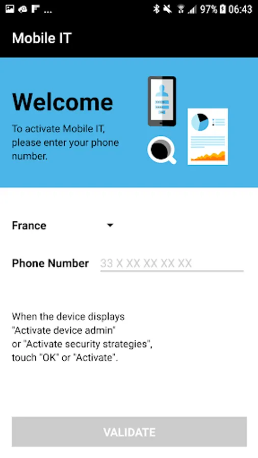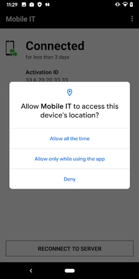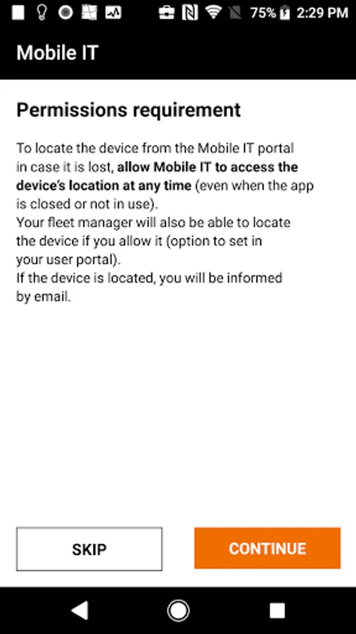 -To locate the terminal from the Device Management portal in the event of loss of the terminal, the Mobile IT application must be authorized to access the position of the terminal at any time, including when the application is in the background.