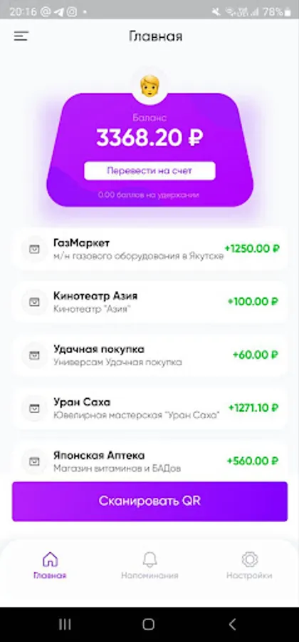 Make a purchase or pay a bill, use the QR scanner, - scan the QR code on the check or take a picture of the check itself. And enjoy the cashback that your wallet in the app has replenished with, because you can use them on your next purchases by paying up to 100% of the cost of the goods.