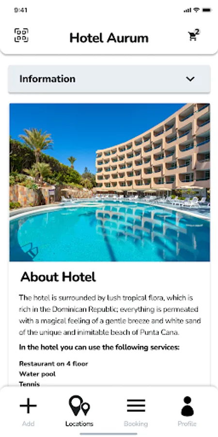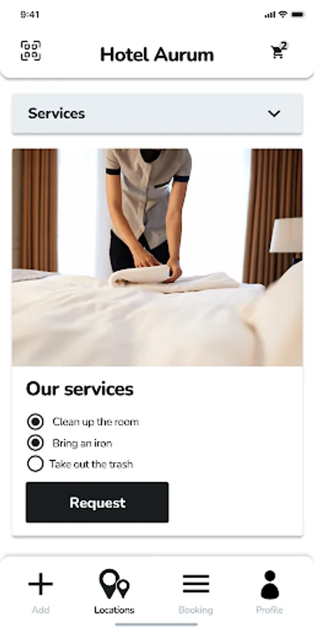 Now you have access to all the services that you can use in this location. Order pizza in a hotel room or call a maid, find an airport transfer, choose a delicious breakfast in a restaurant with the right additions, or book a meeting room in a coworking space. All information in your language, the ability to buy, book, reserve, request or review.