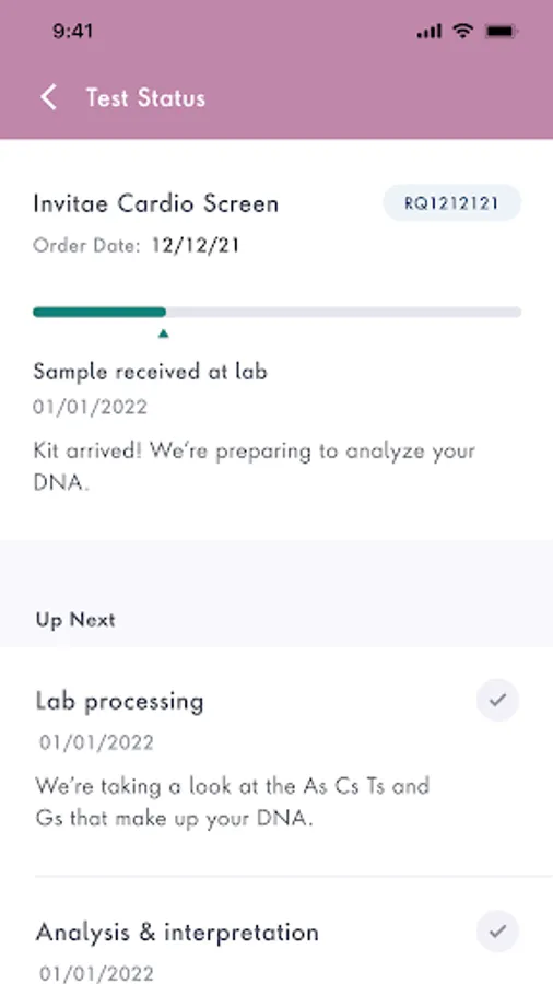 You can order tests from invitae.com, and once you receive a kit, you can use this app to log in to your account, activate your kit, and track the status of your sample.