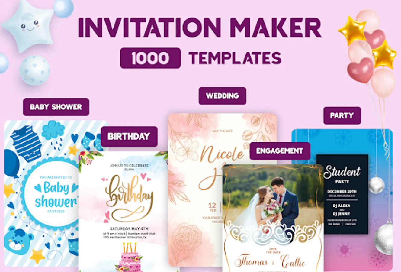 The invite Maker app is the perfect mix of being simple, beautiful, and useful. It has a lot of features and assets that will help you make perfect Digital Party Invitation Cards RSVP every time.
