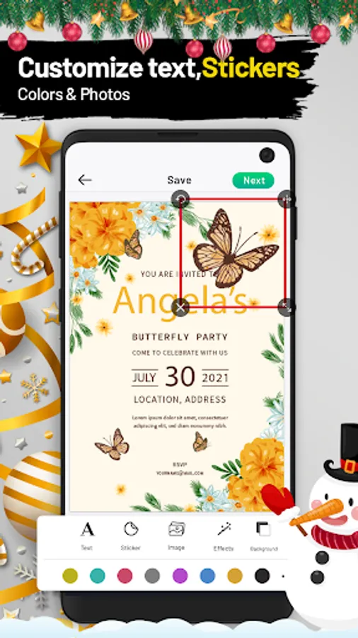 Edit images from your gallery or choose from our background image collection with Invitation Maker.