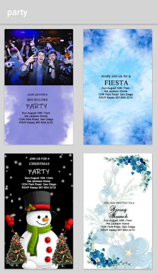 Create custom invitation cards by simply choosing a free invitation template and edit it with your own picture, colors and text, etc.