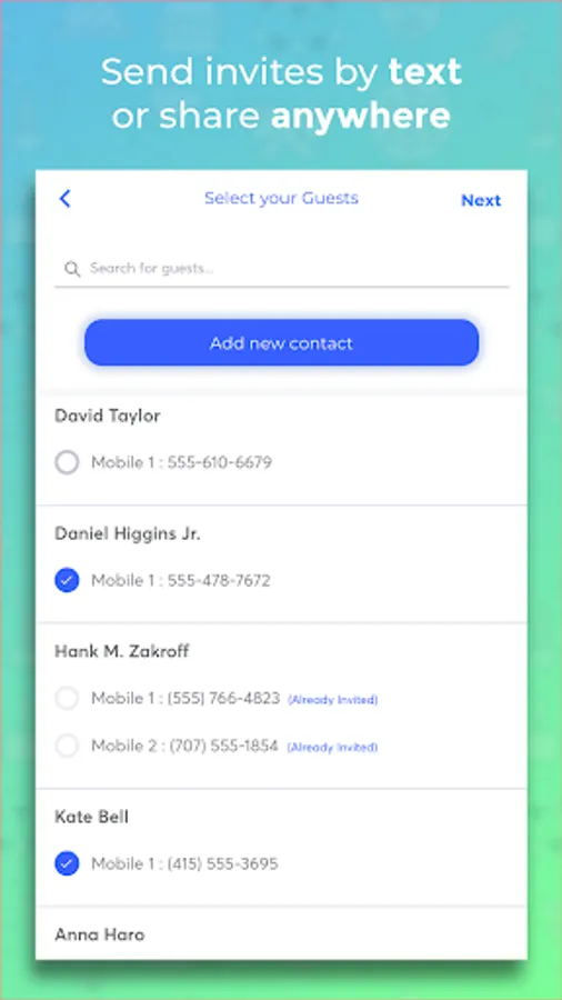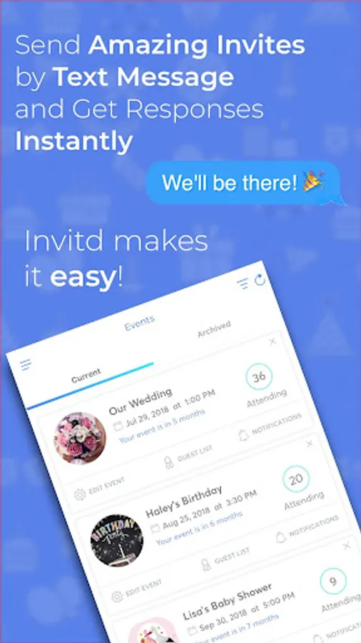 Whether you want to send invitations, text message invitations free or track your rsvp with the simplest rsvp tracker, Invitd is the perfect event invitation maker app to do it!