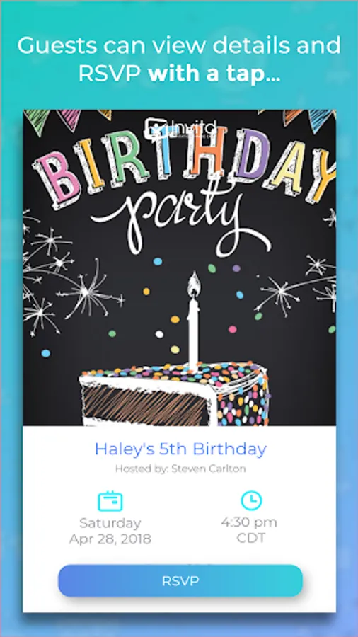 After you create your invitation card with our birthday invitation maker, you can send invitations easily. The best part is that your guests don't even need the mobile invites maker app to view their online invitations and send their party RSVP.