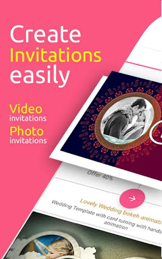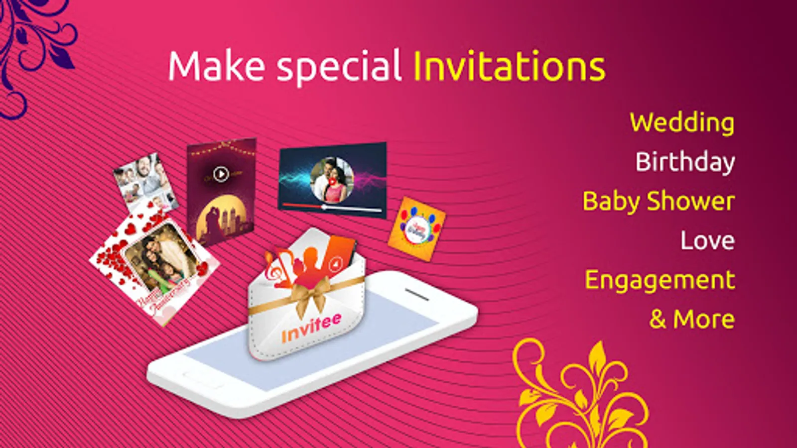 Welcome to the most desirable mobile application named “Invitee Invitations and Wishes”. Invitee provides you to choose pre-built designs of 3D & 2D based on multiple events or occasions. We are presenting you with the most exciting services of video invitations and wishes.