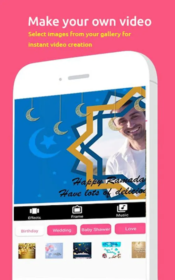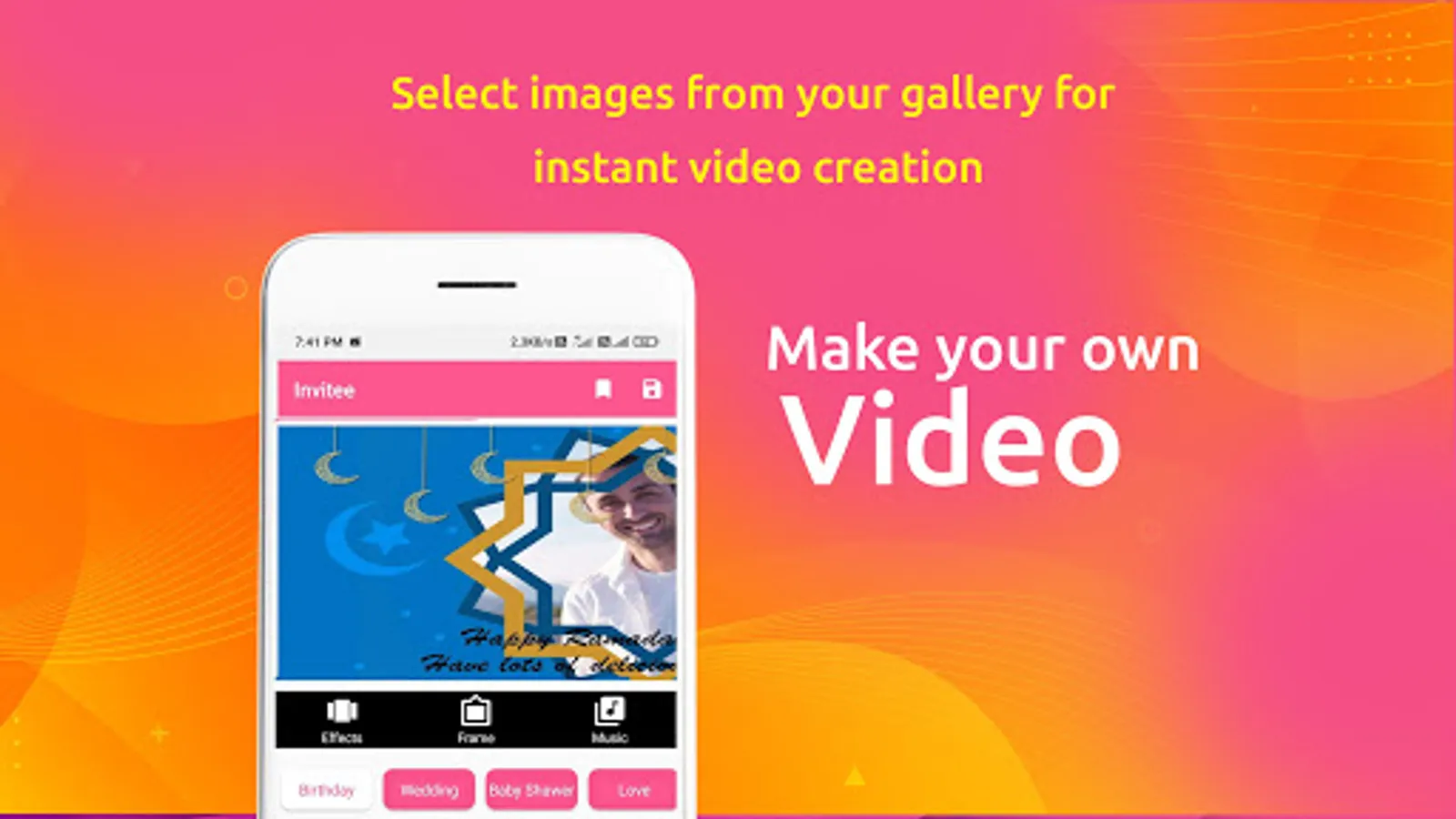 You can use our offline service to create invitations and wishes through videos instantly. Here you can choose your own music, theme, text, etc. for every template. After creating videos, you can directly share it with your friends and family members.