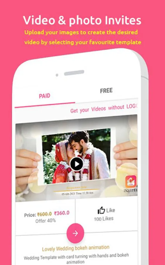 At present in our digital world, it is very common in inviting our families, friends, colleagues, etc. by designer video invitations on all occasions. To satisfy our clients in these situations, we came up with the Invitee mobile application which provides different categories of online video Invitation making designs.
