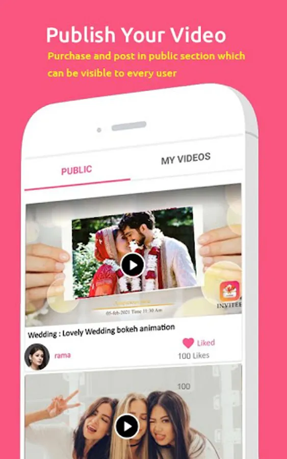 Every client/user who purchases our video will have special options that he can post their videos in the public section. You will be liked and get comments on your videos from other users. Invitee provides this option to the users mainly to grasp trust from customers and make them happy.