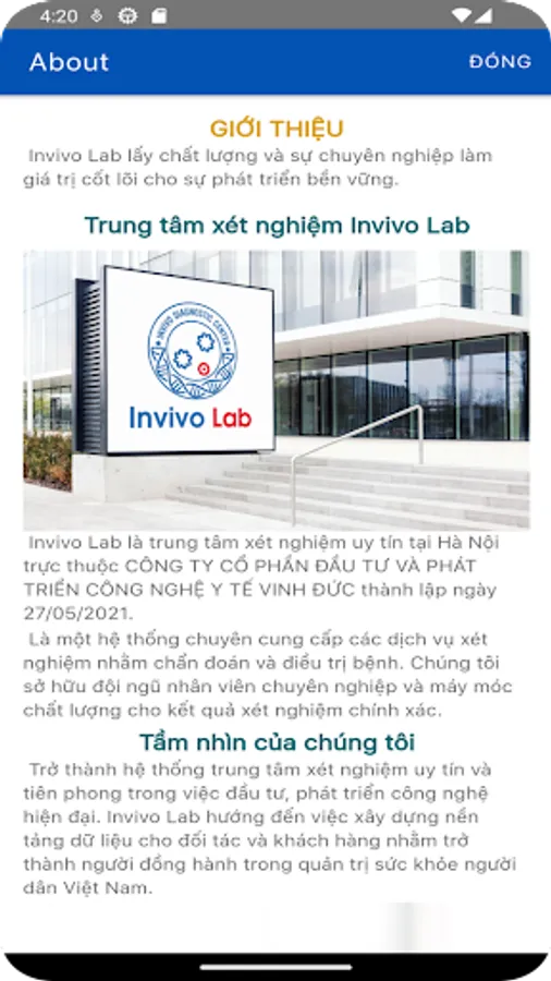 Ứng dụng dành cho đối tác của phòng xét nghiệm