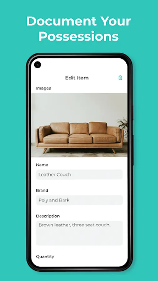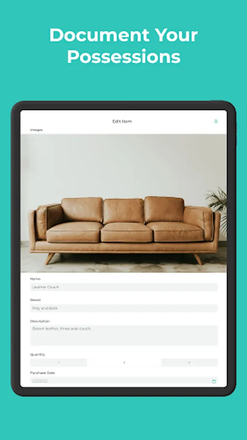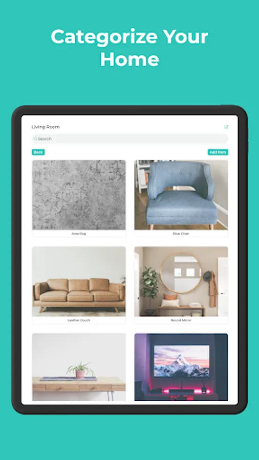 Categories - Photograph, upload and categories all of your items by room location, product type, brand, product description, price, quantity, purchase date, tags, serial number, etc.
