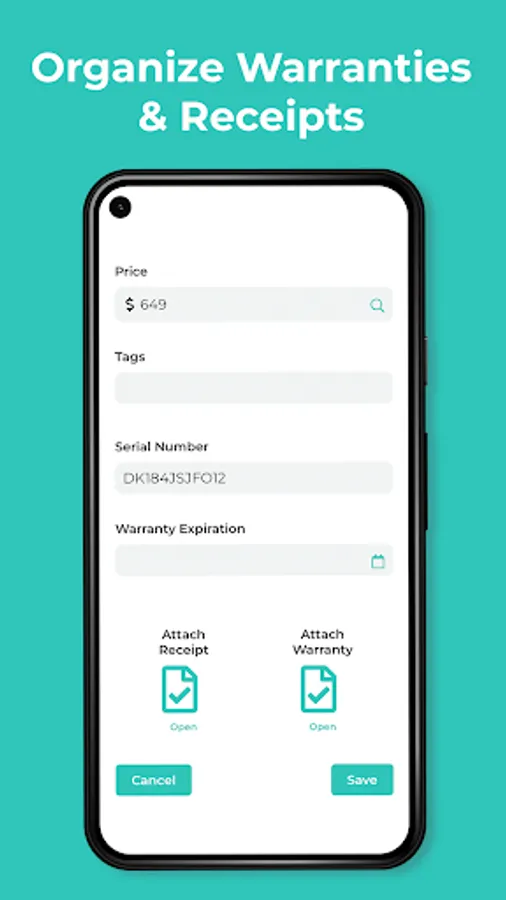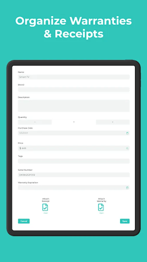 Receipts/Warranties - Safely upload all of your receipts and warranties, and set reminders to notify you of warranty expiration or extension dates.