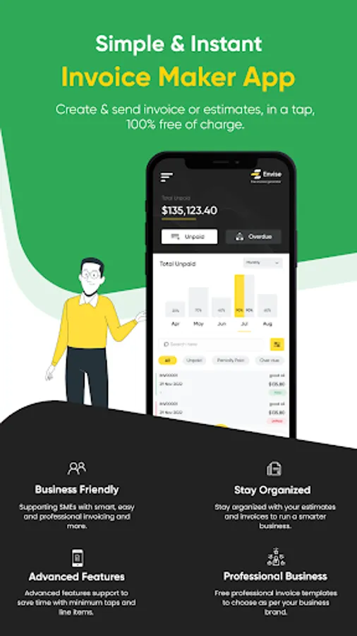 Envise, a free invoice maker app, was developed for entrepreneurs, SME owners, contractors and freelancers for fast estimates and invoicing.