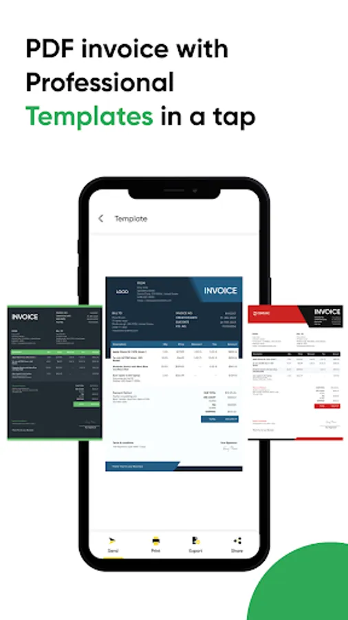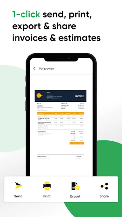 Create and share a professional estimate or invoice in PDF with our templates, with s quick PDF preview support.