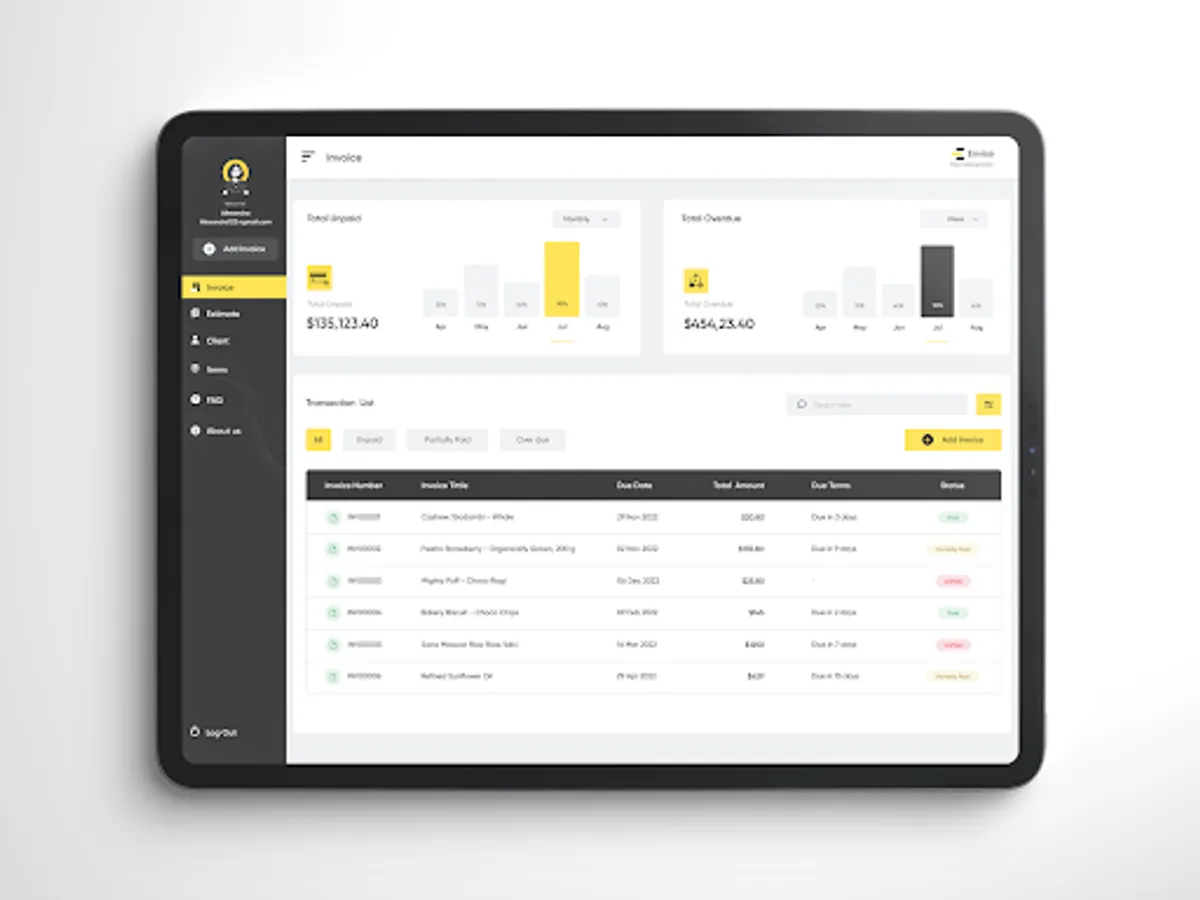 Get a glance on list of invoices send every month or year and get to know your business' insights at a glance.