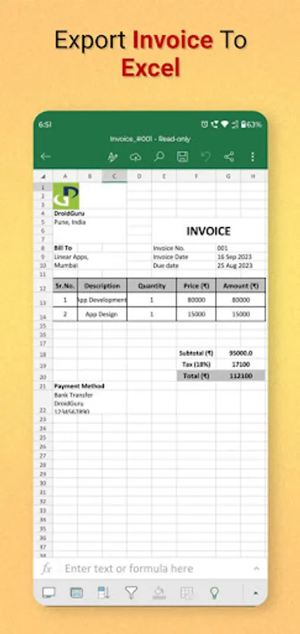 First app to create & share formatted invoice excel.